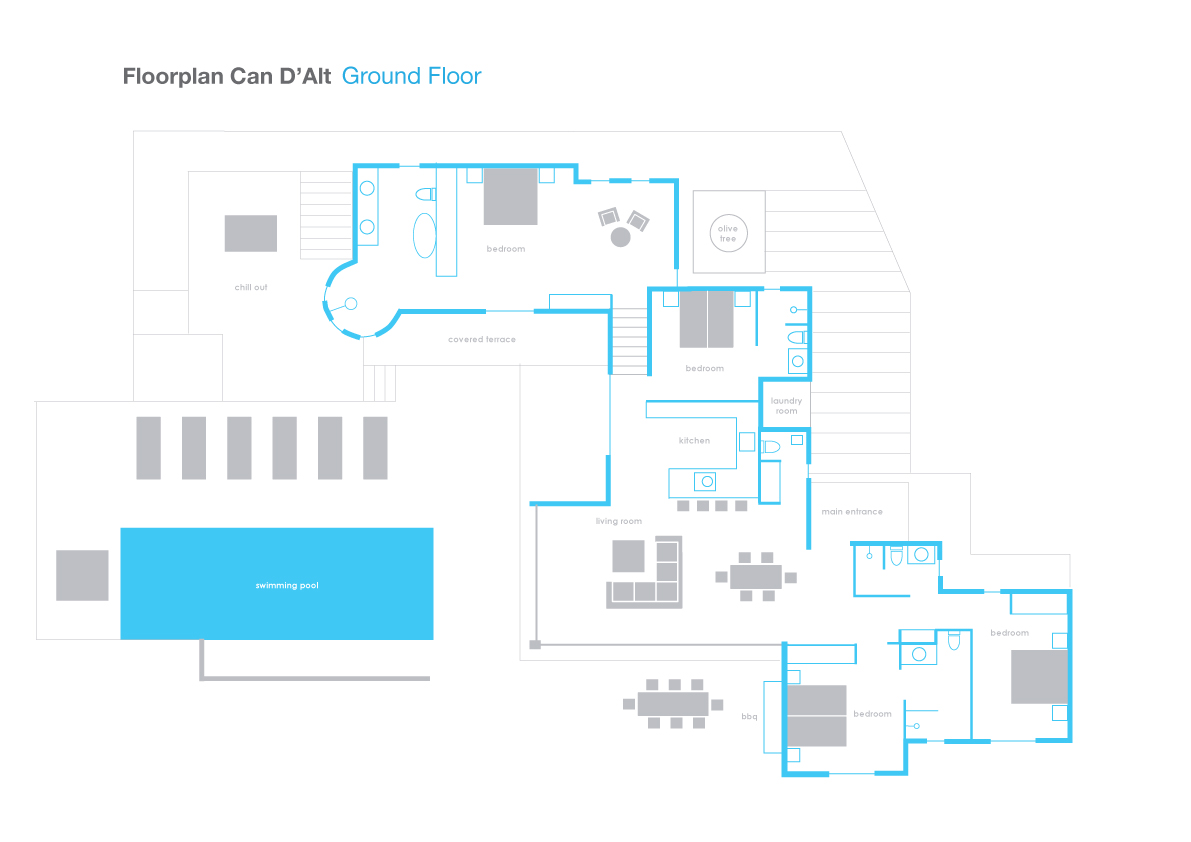 „Can D’alt“ ist Ibizenkisch und bedeutet „das Haus auf der Spitze des Hügels“. Der Name könnte nicht passender sein. Die Aussicht vom Haus ist einfach atemberaubend. Wenn Sie nach Süden über die Salztonebenen Salinas und über das Meer zur Insel Formentera blicken, bekommen Sie den Eindruck, dass die Aussicht grenzenlos ist. Man benötigt mehr als ein paar Minuten, um das alles aufzunehmen. Diese Villa mit vier Schlafzimmern wurde vor kurzem stilvoll renoviert und auf einen sehr hohen Standard gebracht. Die Innen- und Außenräume verbinden sich nahtlos miteinander und schaffen ein wundervolles Anwesen für das Leben im Sommer. Was Ihre Position auf der Insel betrifft, ist die Lage fantastisch. Das Anwesen ist von pinienbewachsenen Terrassen umgeben, und obwohl es wunderbar rustikal ist, können Sie schnell den Hügel hinunterfahren und innerhalb von wenigen Minuten die begehrtesten Orte der Insel erreichen. Der Strand von Salinas, Cala Jondal, Playa d’en Bossa, die Stadt Ibiza und die Yachthäfen sowie das hübsche Dorf San Jose sind innerhalb von 10 Minuten erreichbar. Besser geht es nicht.