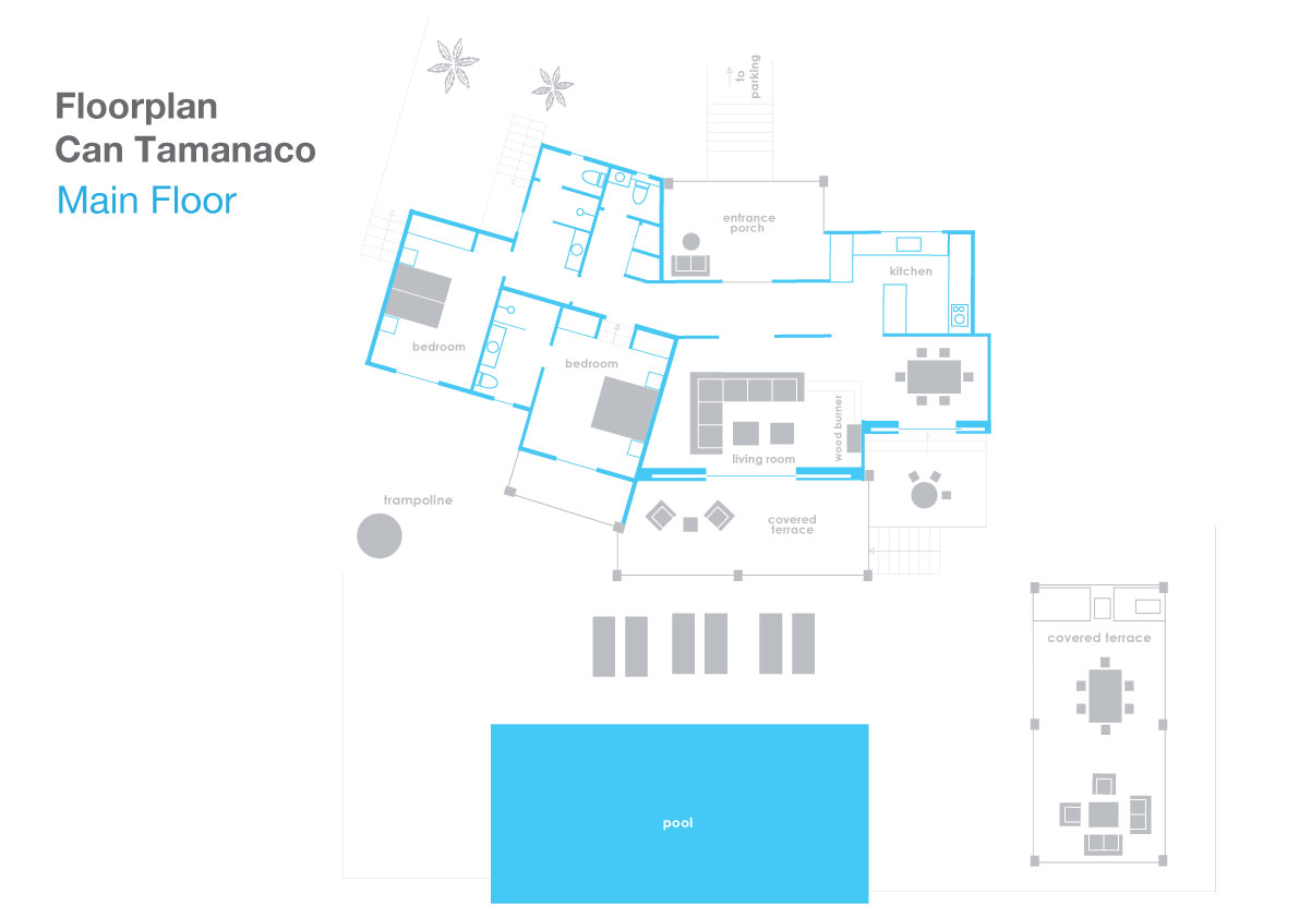 Can Tamanaco está orientada al oeste para que las vistas al mar estén siempre presentes. Con dos dormitorios en suite y una zona de estar de planta abierta, esta bonita villa ibicenca ofrece un alojamiento vacacional ideal para una familia o una pareja. La villa ha sido recientemente renovada en una mezcla de estilo moderno y tradicional y ha sido completamente reamueblada. Hay una impresionante piscina infinita, donde encontrarás una amplia terraza para tomar el sol y un fantástico comedor abierto con cocina exterior y barbacoa.
