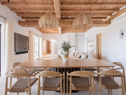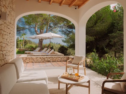 Entrar en Villa Livina es como abrir las páginas de una elegante revista de interiorismo. Los suaves colores naturales y los materiales orgánicos crean un aura relajante que marca el tono de esta maravillosa casa de vacaciones. El alojamiento es en una sola planta. Una amplia zona de estar, comedor y cocina de planta abierta se refleja en una larga terraza exterior cubierta que recorre toda la casa, creando mucho espacio a la sombra para vivir el verano. Desde la terraza se puede disfrutar de vistas al jardín, al mar y a Formentera. Hay cuatro encantadoras habitaciones dobles con baños.