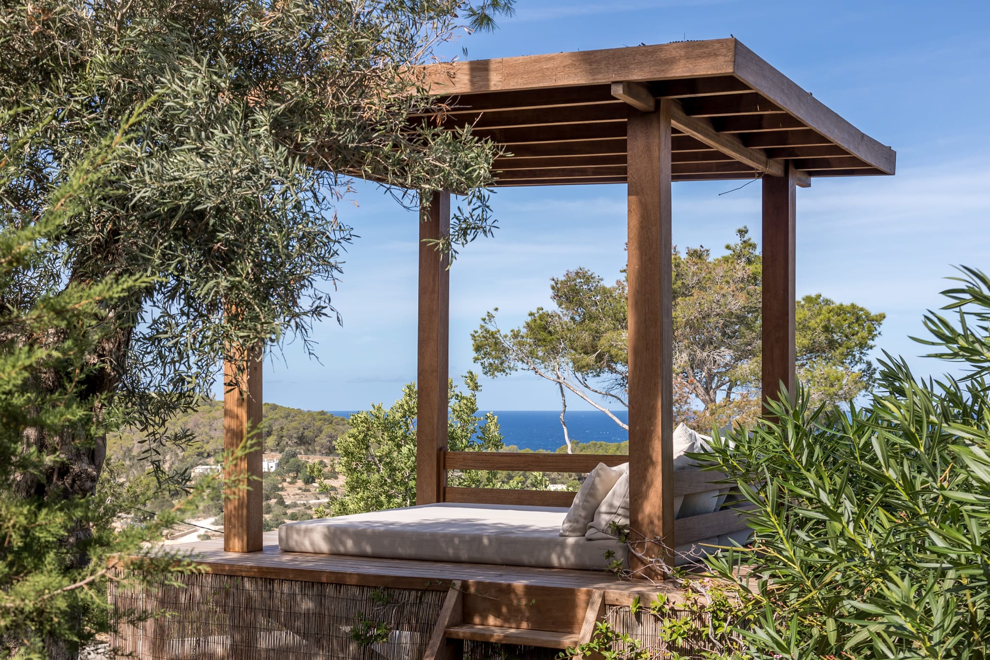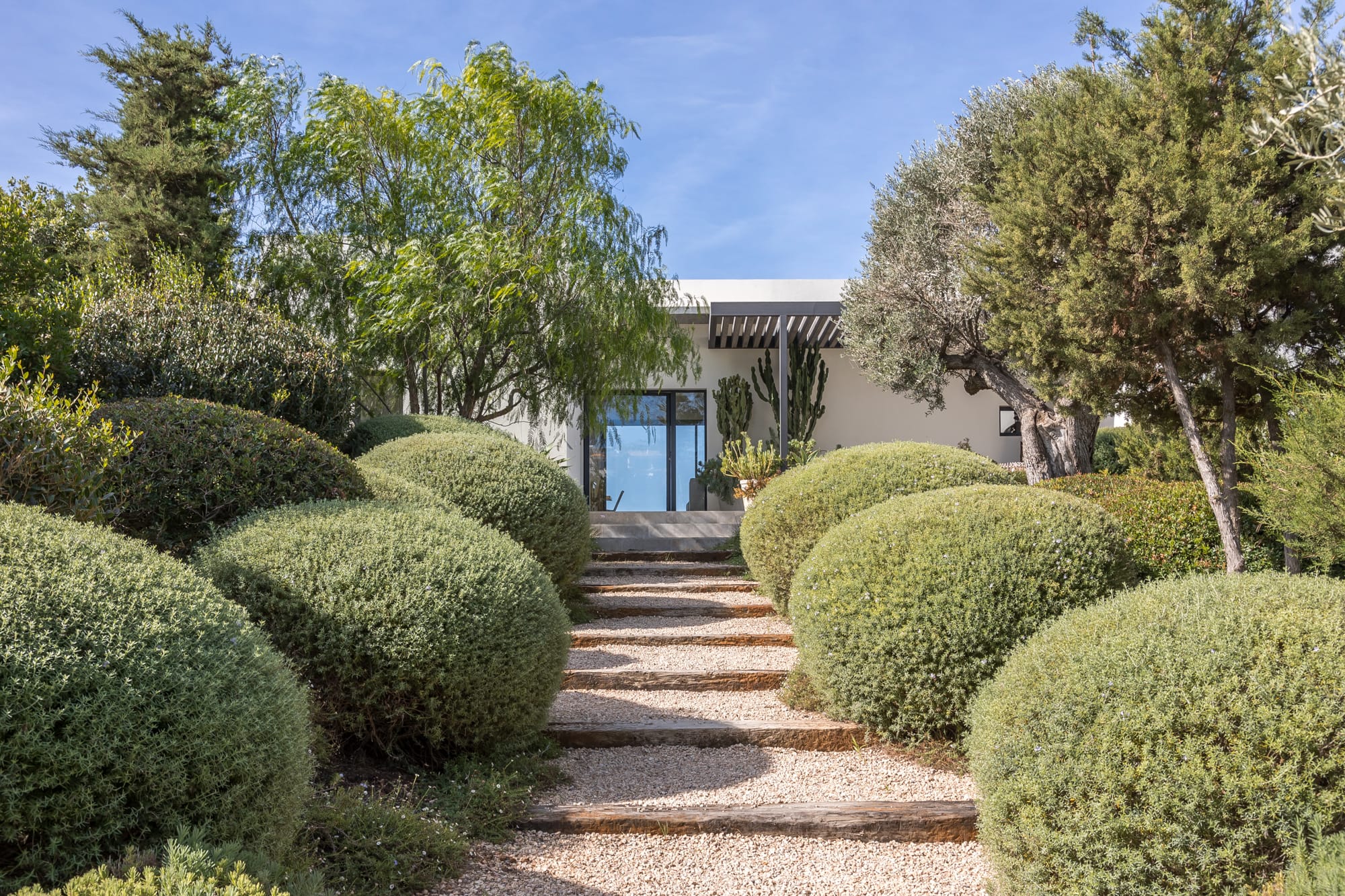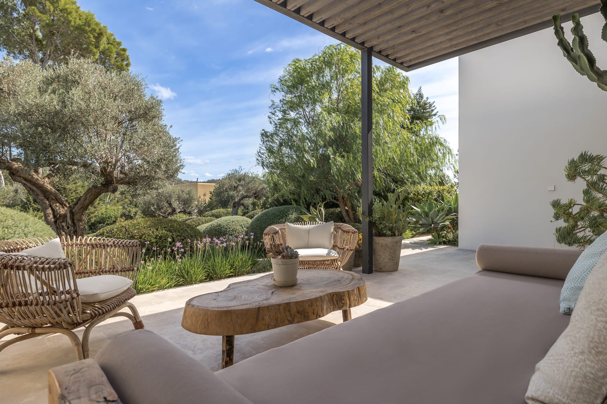It’s hard to think of many better places to be as you lie back pool-side at Can Haya and watch the sun melt into the sea as another magical Ibiza day ends. Can Haya is blessed with more than stunning views however. This newly reformed luxury villa has been designed and decorated in a superbly stylish and tasteful manner and makes a wonderful holiday house. Whilst the front of the villa is all about the striking infinity pool, the inviting sunbathing area and the incredible views there are also lovely natural gardens behind the house including a tree shaded ‘petanca’ pitch and a wooden platform chill out area. The beautiful bays and coves of the west coast are in easy reach, with the sands of Cala Salada, Cala Gracio and the delightful little Cala Gracioneta all within 2kms.