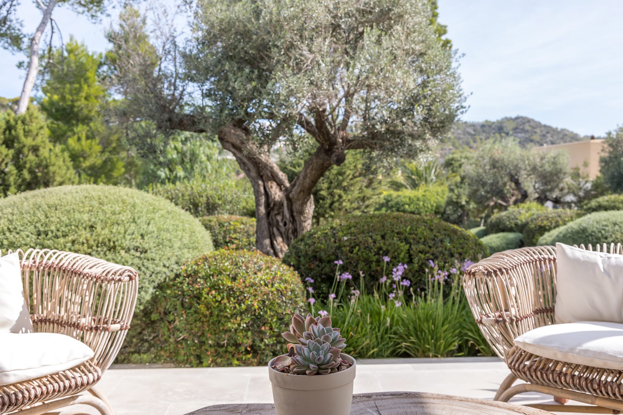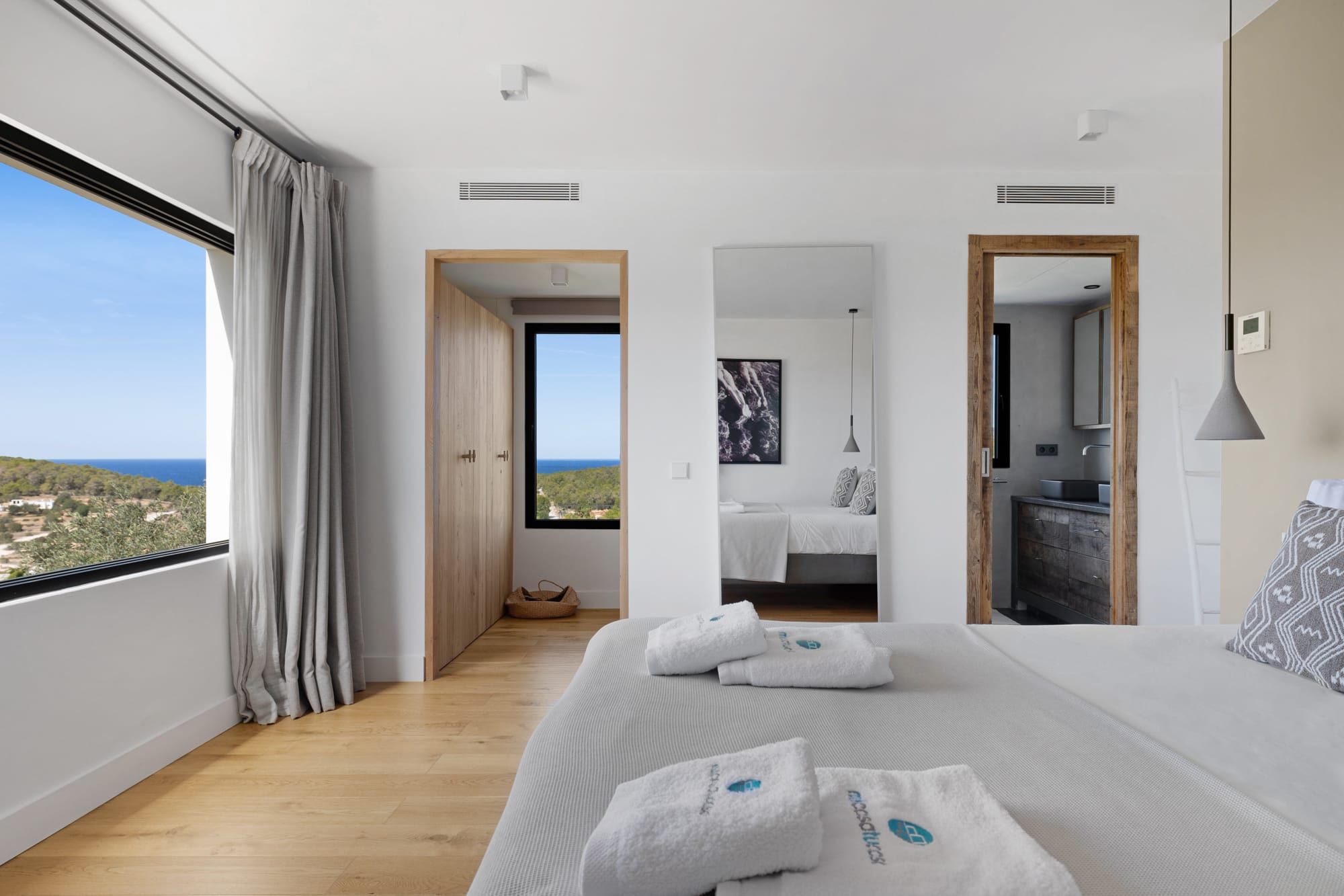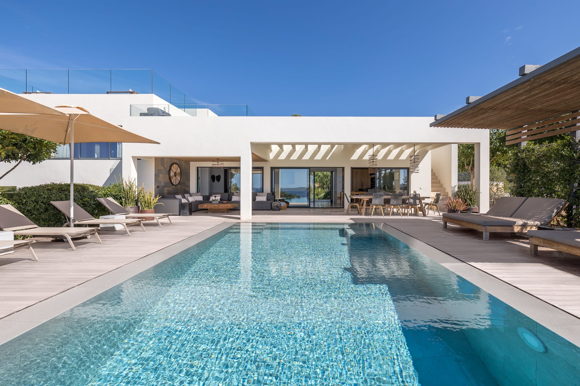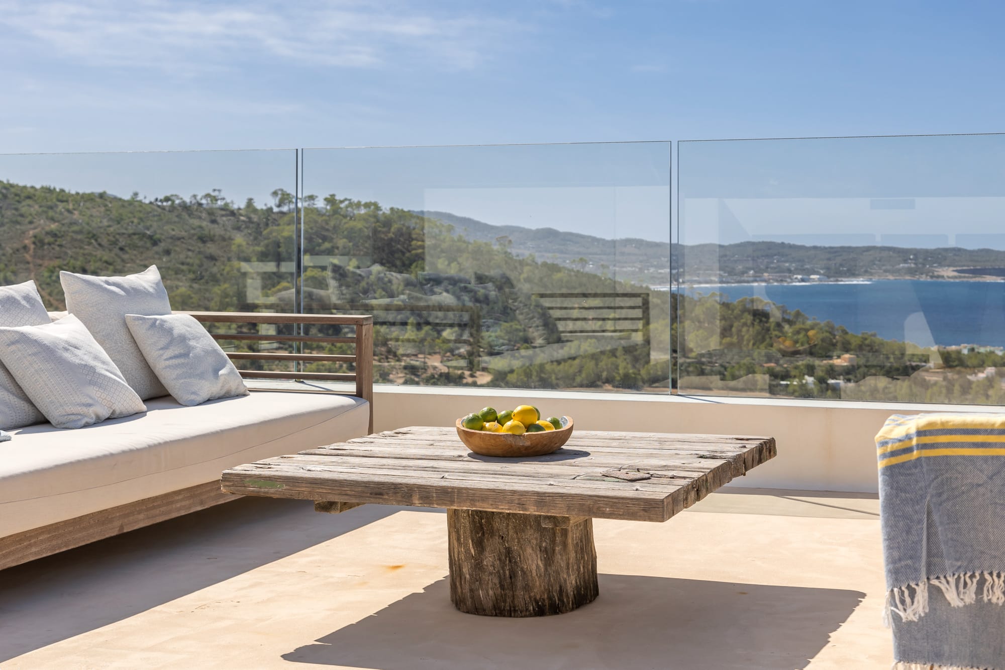It’s hard to think of many better places to be as you lie back pool-side at Can Haya and watch the sun melt into the sea as another magical Ibiza day ends. Can Haya is blessed with more than stunning views however. This newly reformed luxury villa has been designed and decorated in a superbly stylish and tasteful manner and makes a wonderful holiday house. Whilst the front of the villa is all about the striking infinity pool, the inviting sunbathing area and the incredible views there are also lovely natural gardens behind the house including a tree shaded ‘petanca’ pitch and a wooden platform chill out area. The beautiful bays and coves of the west coast are in easy reach, with the sands of Cala Salada, Cala Gracio and the delightful little Cala Gracioneta all within 2kms.