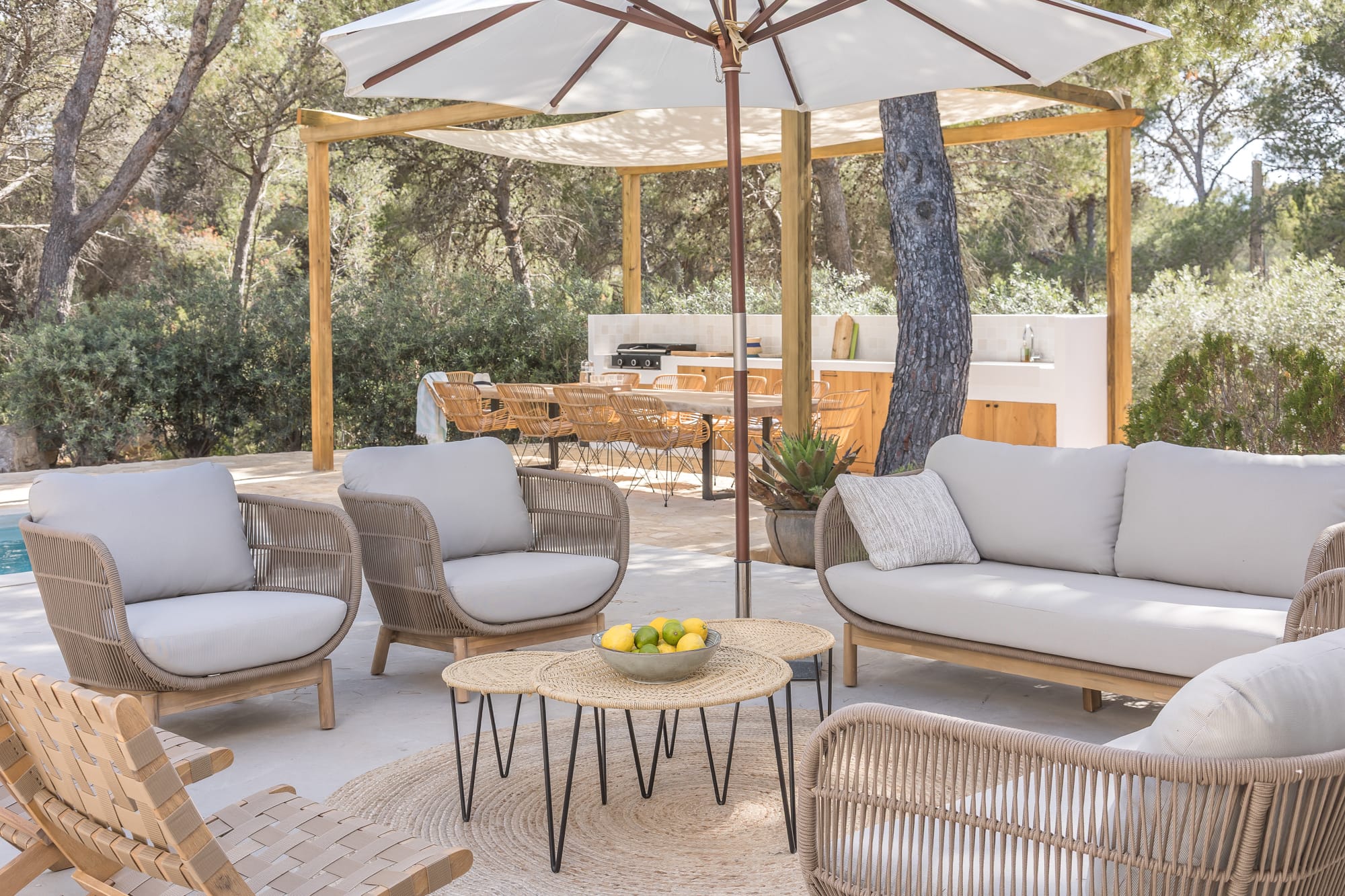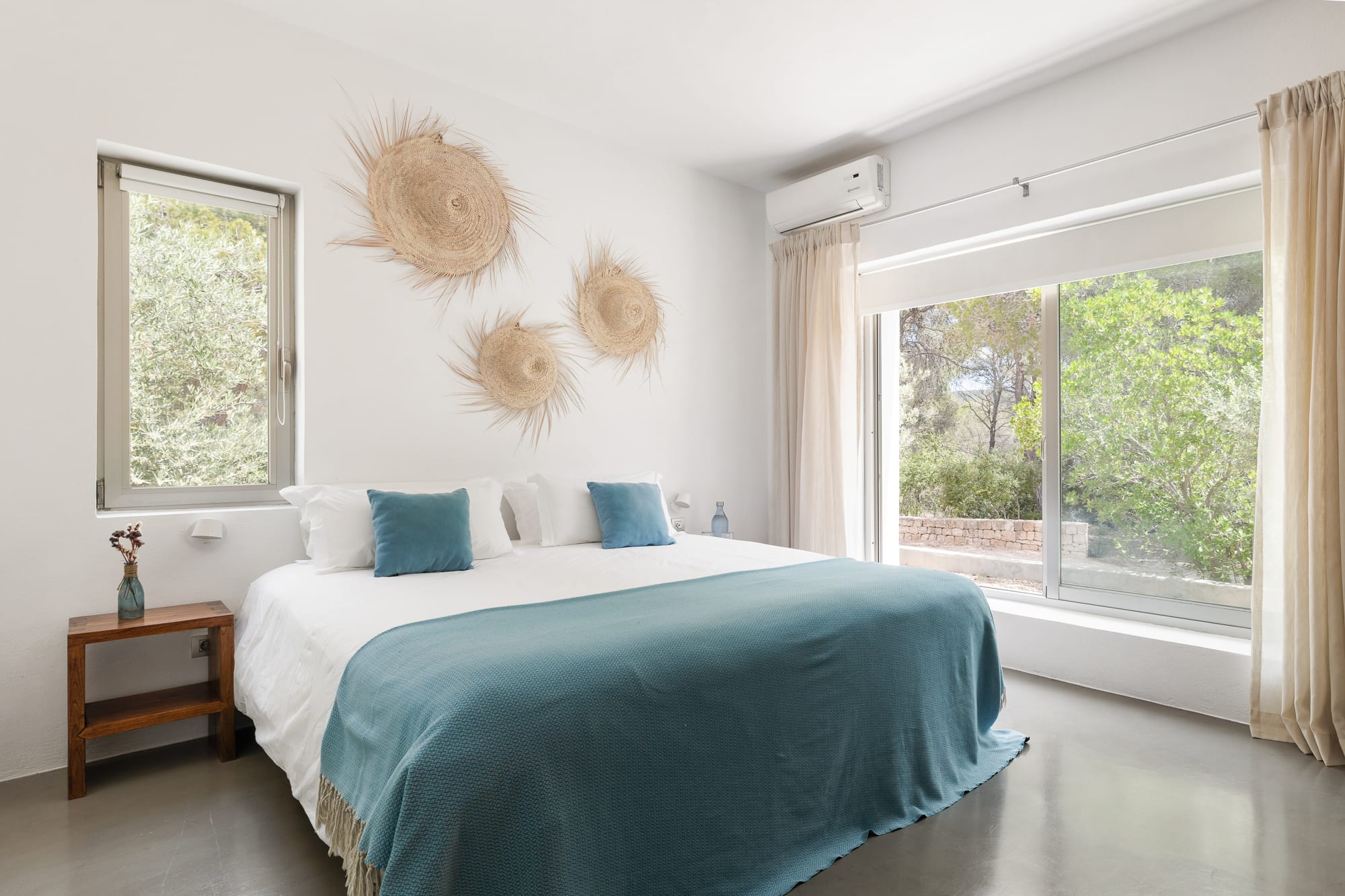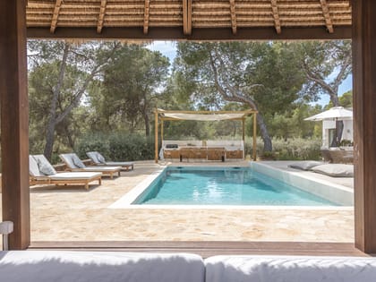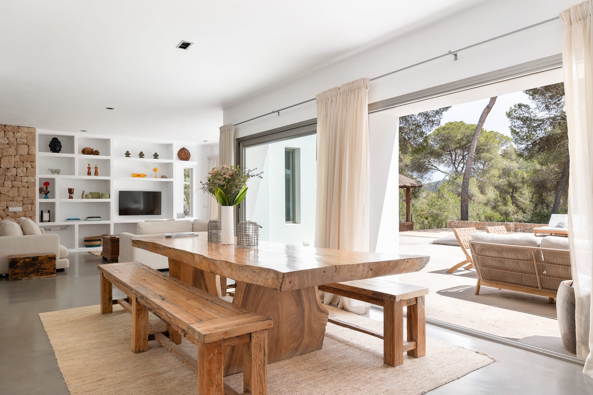 Can Torrent is a stylish and spacious four bedroom Ibiza villa in a superb location enjoying wonderful privacy. The house is surrounded by becalming pine trees which give a delightfully cooling shade in the hot summer months. It is only a 10 minute walk to Es Torrent beach and restaurant, seen by many as the best fish restaurant on the island, and only four minutes ́ drive from Cala Jondal ́s famous beach clubs including Casa Jondal, one of the Mediterranean’s chicest and most in-demand beach restaurants. The villa is decorated in a cool minimalist style with a warm Indonesian twist. It is a great place to relax, unwind and to explore the island’s beautiful south coast which is dotted with pretty bays, excellent waterside restaurants and tranquil swimming spots.