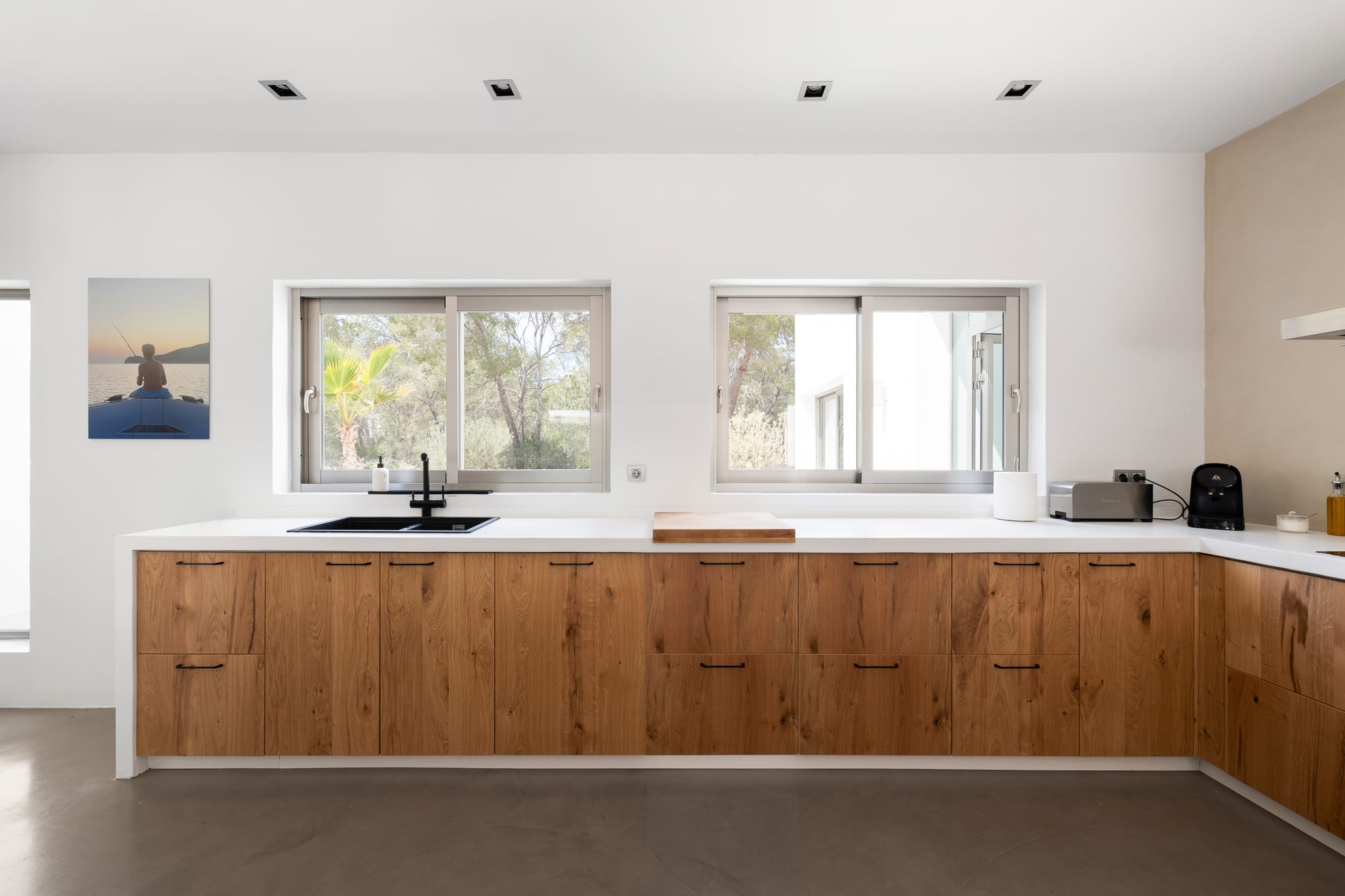 Think spacious and you have Can Torrent. All four bedrooms are a great size, there are 4 bathrooms (3 en-suite), the open plan living area is plentiful and the kitchen is fantastic making it the perfect house for entertaining. You walk straight from the inside dining area to the outside dining terrace and the pool terrace so there is a great focus to the house.