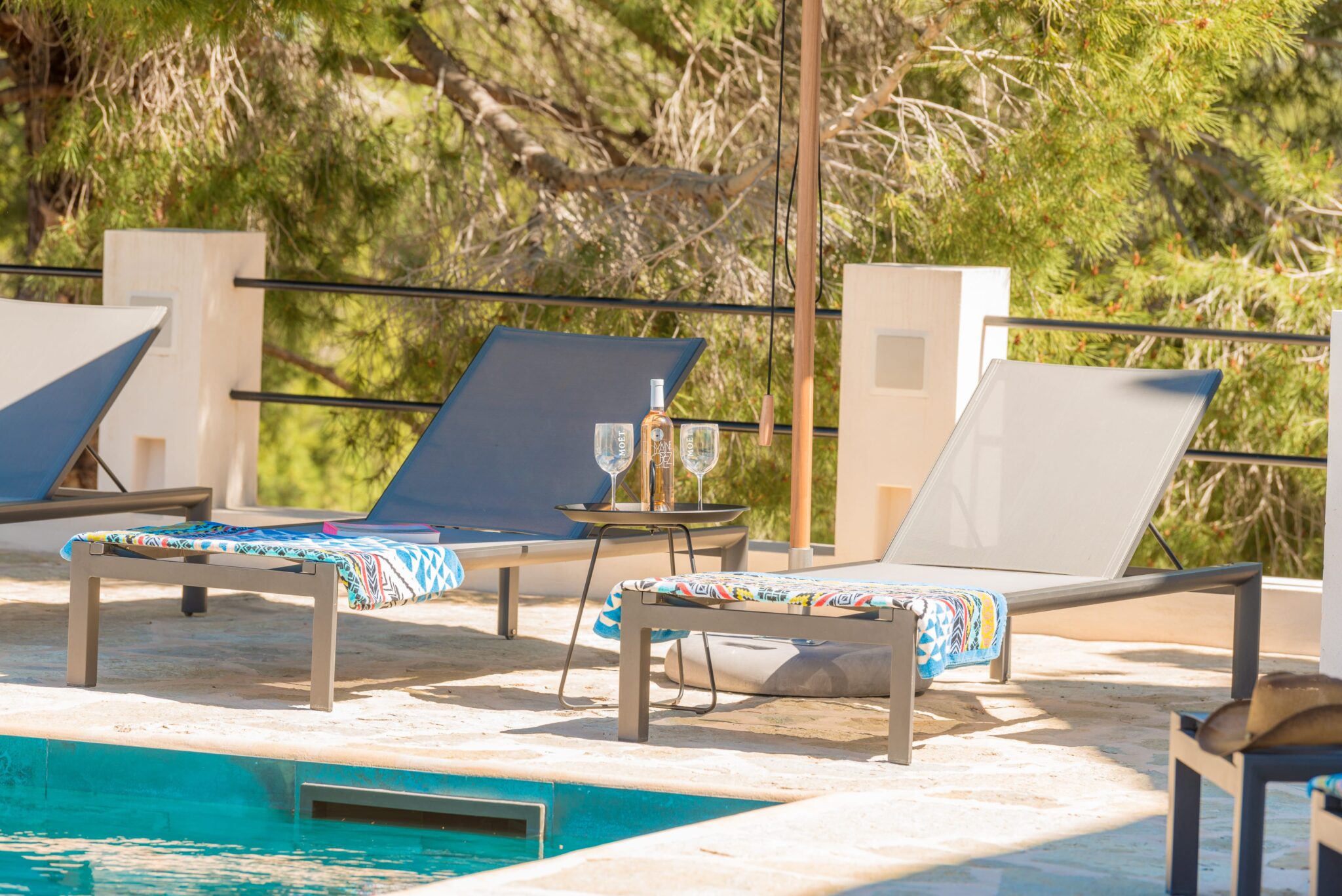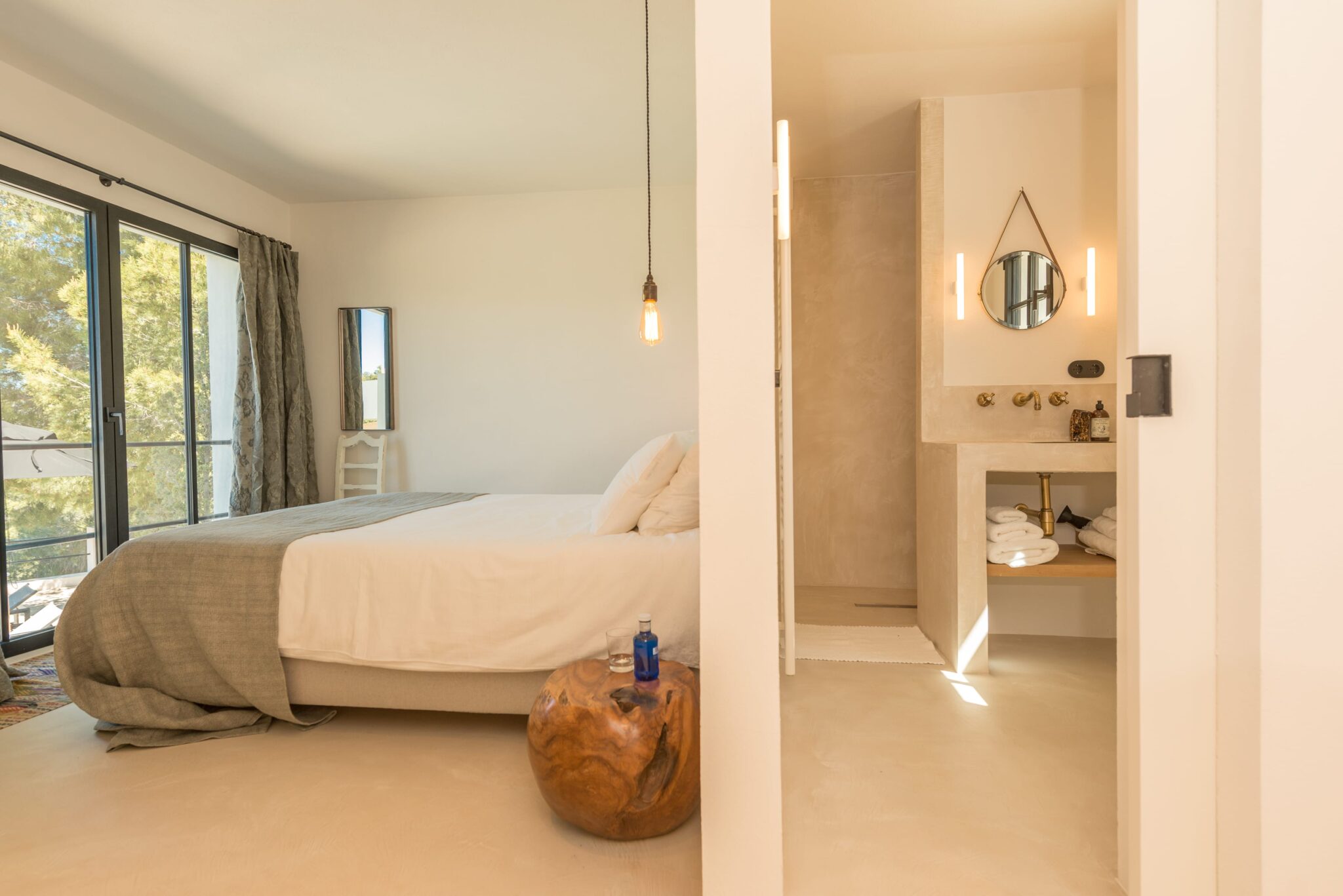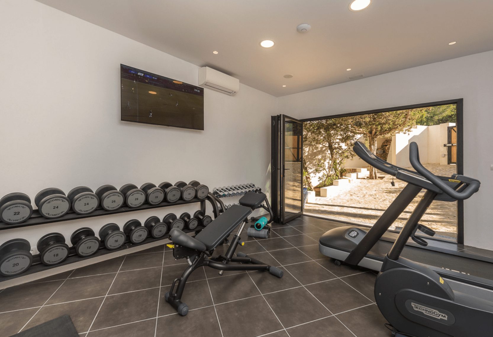 Sleek interiors, bespoke furnishings and meticulous attention to detail create an atmosphere of understated luxury. With five beautifully appointed bedrooms, generous open-plan living spaces and a seamless indoor-outdoor flow, the villa is designed for both sophisticated gatherings and serene relaxation. Four bedrooms are located in the main house, all featuring spacious ensuite doubles. A fully equipped, air-conditioned gym adds a touch of luxury for those who like to keep active.
