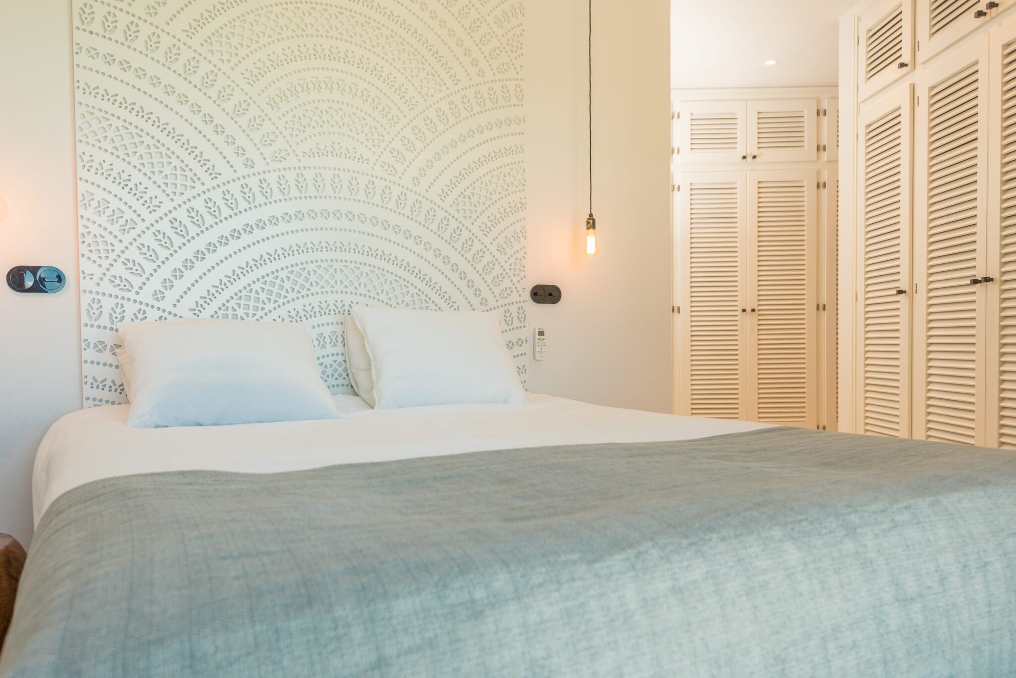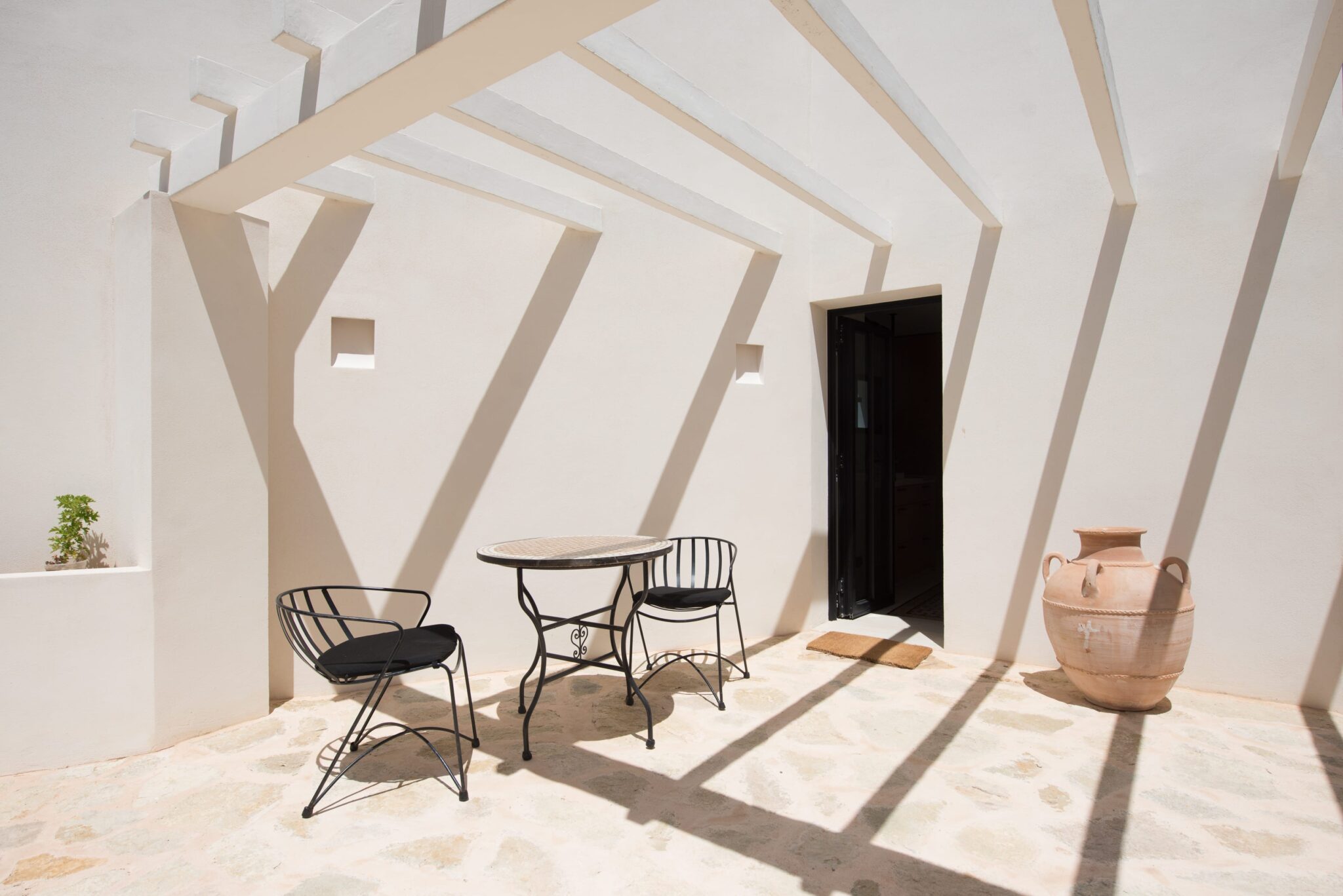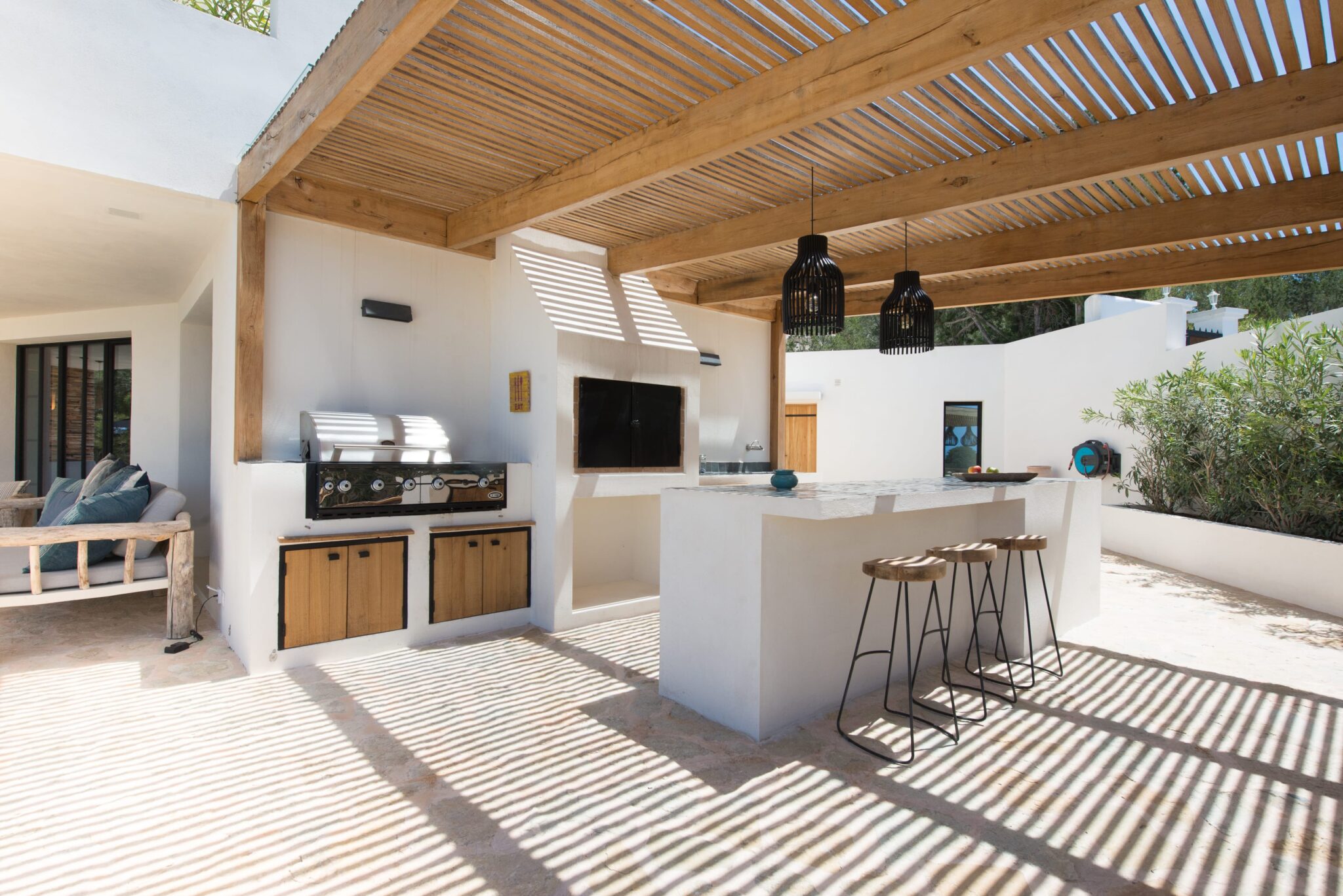 Sleek interiors, bespoke furnishings and meticulous attention to detail create an atmosphere of understated luxury. With five beautifully appointed bedrooms, generous open-plan living spaces and a seamless indoor-outdoor flow, the villa is designed for both sophisticated gatherings and serene relaxation. Four bedrooms are located in the main house, all featuring spacious ensuite doubles. A fully equipped, air-conditioned gym adds a touch of luxury for those who like to keep active.